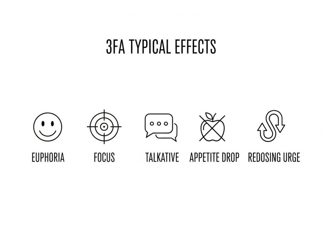 3-FA-st räägitakse sageli samamoodi nagu tavalisest amfetamiinist, kuna see on energiline ja motiveeriv.